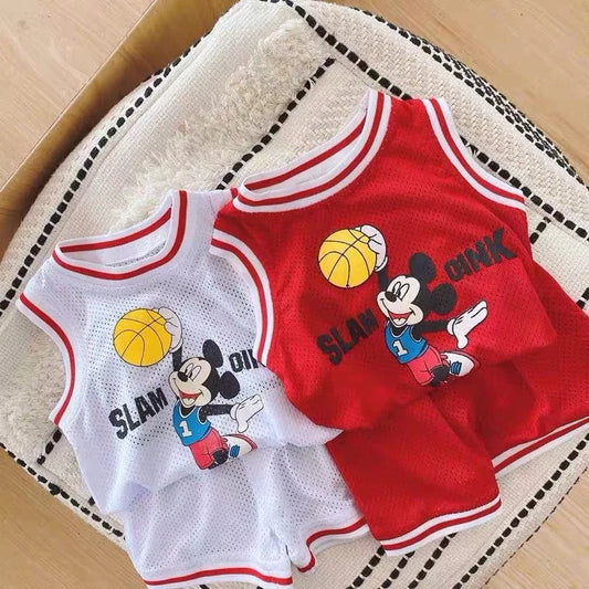 1 2 3 4 Years Old Child Casual Cartoon Tracksuits Thin Crewneck Vest+Shorts For Baby Boys Brand Fashion Basketball Clothes 2pcs